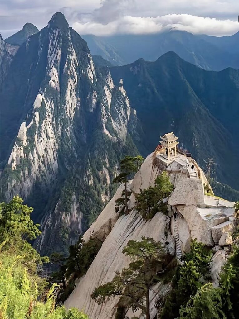 Mais derrière cette image vertigineuse, se cache un lieu d’une profondeur spirituelle incroyable, où des ermites taoïstes cherchaient jadis l’immortalité. Aujourd’hui, des milliers de voyageurs viennent gravir ses cinq pics — Est, Ouest, Sud, Nord et Central — pour admirer le lever du soleil ou simplement ressentir l’énergie unique du lieu.